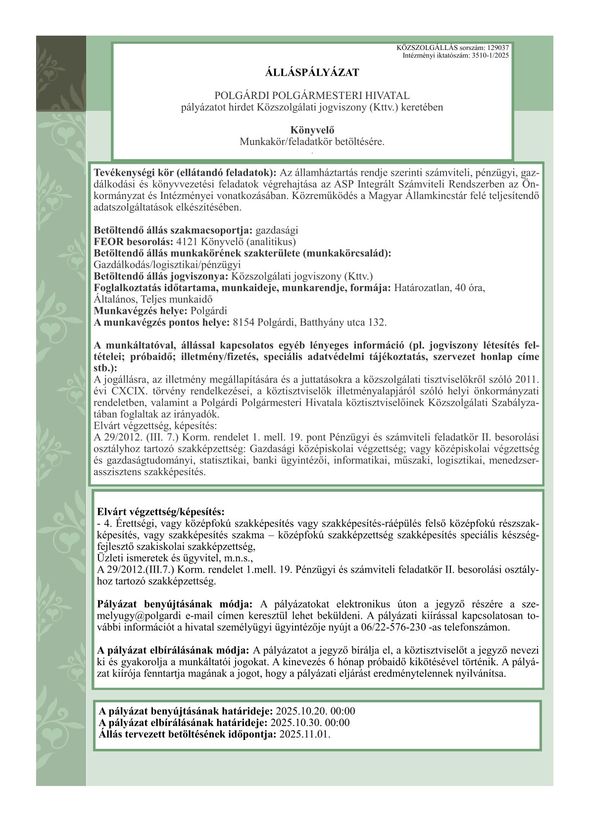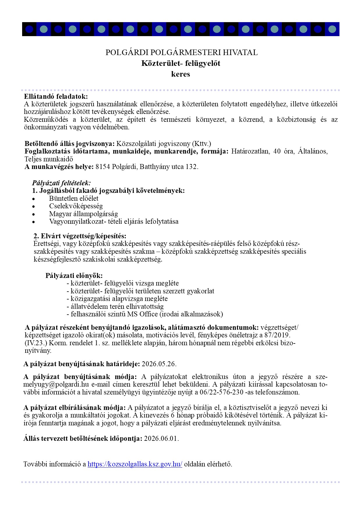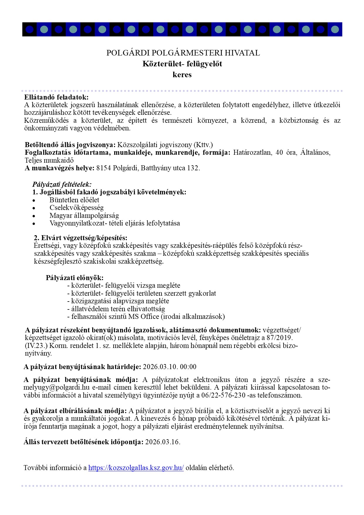 Nagy örömmel köszöntöm Önöket városunk megújult honlapján! Az új weboldalunk célja, hogy digitális hídként szolgáljon a városlakók, a településen befektetni kívánó vállalkozások, vagy a turistaként hozzánk látogató emberek számára egyaránt! A mai rohanó világban a versenyképesség egyik legfontosabb feltétele, hogy gyorsan és egyszerűen tudjunk információt megosztani egymással. A honlapon megtalálhatóak a legfontosabb hírek és események, legyen szó kulturális rendezvényről, sporteseményről, vagy akár egy városfejlesztési projektről. Ahogy korábban, az új weboldalunkon is fellelhetőek a városi intézmények elérhetőségei, fontos dokumentumok és hasznos nyomtatványok, valamint az összes közérdekű információ egyaránt. Kérem, ne feledjék: bárkinek a javaslatát, észrevételét, illetve építő gondolatait szívesen fogadom, különösen akkor, ha az a településen élők javát, épített értékeink védelmét, vagy természeti kincseink megóvását szolgálja. A Polgármesteri Hivatal nevében köszönjük a sok támogatást és a megtisztelő bizalmat! Továbbra is állunk rendelkezésükre és minden erőnkkel azon dolgozunk, hogy Polgárdi egy jobb hely legyen holnap, mint amilyen tegnap volt! Köszönöm mindenkinek, aki bármilyen módon hozzájárul ehhez az építő munkához!
