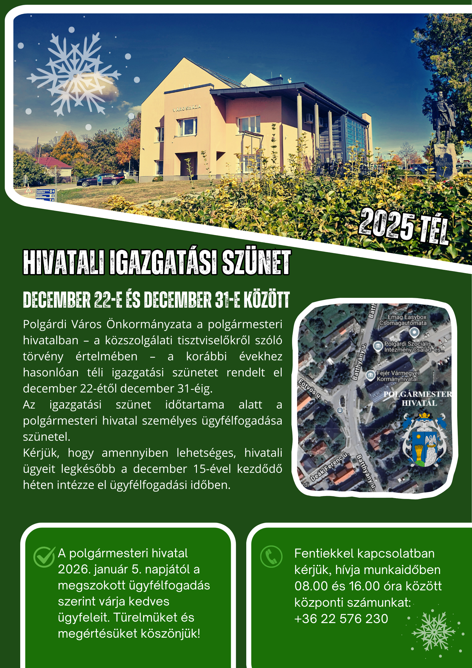 Nagy örömmel köszöntöm Önöket városunk megújult honlapján! Az új weboldalunk célja, hogy digitális hídként szolgáljon a városlakók, a településen befektetni kívánó vállalkozások, vagy a turistaként hozzánk látogató emberek számára egyaránt! A mai rohanó világban a versenyképesség egyik legfontosabb feltétele, hogy gyorsan és egyszerűen tudjunk információt megosztani egymással. A honlapon megtalálhatóak a legfontosabb hírek és események, legyen szó kulturális rendezvényről, sporteseményről, vagy akár egy városfejlesztési projektről. Ahogy korábban, az új weboldalunkon is fellelhetőek a városi intézmények elérhetőségei, fontos dokumentumok és hasznos nyomtatványok, valamint az összes közérdekű információ egyaránt. Kérem, ne feledjék: bárkinek a javaslatát, észrevételét, illetve építő gondolatait szívesen fogadom, különösen akkor, ha az a településen élők javát, épített értékeink védelmét, vagy természeti kincseink megóvását szolgálja. A Polgármesteri Hivatal nevében köszönjük a sok támogatást és a megtisztelő bizalmat! Továbbra is állunk rendelkezésükre és minden erőnkkel azon dolgozunk, hogy Polgárdi egy jobb hely legyen holnap, mint amilyen tegnap volt! Köszönöm mindenkinek, aki bármilyen módon hozzájárul ehhez az építő munkához!